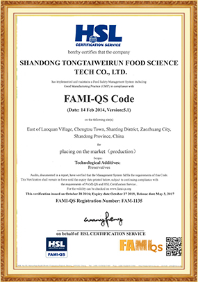 公司是“國家高新技術(shù)企業(yè)”、“國家知識產(chǎn)權(quán)優(yōu)勢企業(yè)”、“中國產(chǎn)品質(zhì)量放心達(dá)標(biāo)企業(yè)”、工信部“中國制造2025 重大項目庫企業(yè)”、 “山東省瞪羚企業(yè)”、山東省首批“隱形冠軍企業(yè)”、“山東省知名品牌”企業(yè)、“山東省兩化融合試點示范企業(yè)”、“省級產(chǎn)業(yè)互聯(lián)網(wǎng)平臺示范企業(yè)”、“山東省專精特新企業(yè)”。共獲得 10多個創(chuàng)新平臺(“山東省博士創(chuàng)新基地”、“省級企業(yè)技術(shù)中心”、“省級一企一技術(shù)研發(fā)中心”、“省級工程實驗室”、“棗莊市復(fù)配飼料添加劑技術(shù)創(chuàng)新中心”、“棗莊市食品防腐劑工程試驗室”、“棗莊市食品防腐劑工程技術(shù)研究中心”、“棗莊市科技協(xié)同創(chuàng)新中心”)。擁有ISO9001質(zhì)量管理體系、ISO22000食品安全管理體系、法國國際檢驗局(BV)、猶太KOSHER、清真halal、歐盟FAMI-QS、美國FDA等七個體系認(rèn)證,真正實現(xiàn)了中國和歐盟雙認(rèn)證。