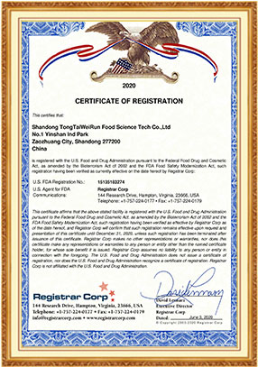 山東同泰維潤食品科技股份有限公司于 2011 年由棗莊市山亭區(qū)人民政府招商引資進入山亭區(qū)經(jīng)濟開發(fā)區(qū)銀山工業(yè)園1號,注冊資金 3500 萬元,現(xiàn)有員工 118 人,博士 2 名,碩士 1 名,有中級以上職稱 20 余人,柔性引進高層次人才 5 人。公司南臨S320省道2公里,距京杭大運河40公里、徐州機場80公里。西臨京滬高鐵站10公里,距離104國道、京福高速公路20公里,東距日照港107公里。自然環(huán)境優(yōu)越,交通十分便利。公司已于 2019 年完成股份改制,計劃申請上市。